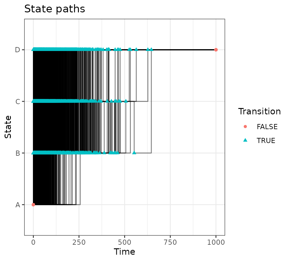mod <- create_msm(tm, t_max = tmax)This model has 3 possible transitions. Now we can simulate events