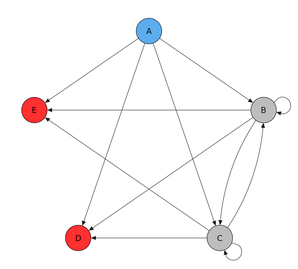 tm <- transmat_full(state_names = LETTERS[1:5], sources = 1, terminal = c(4, 5))