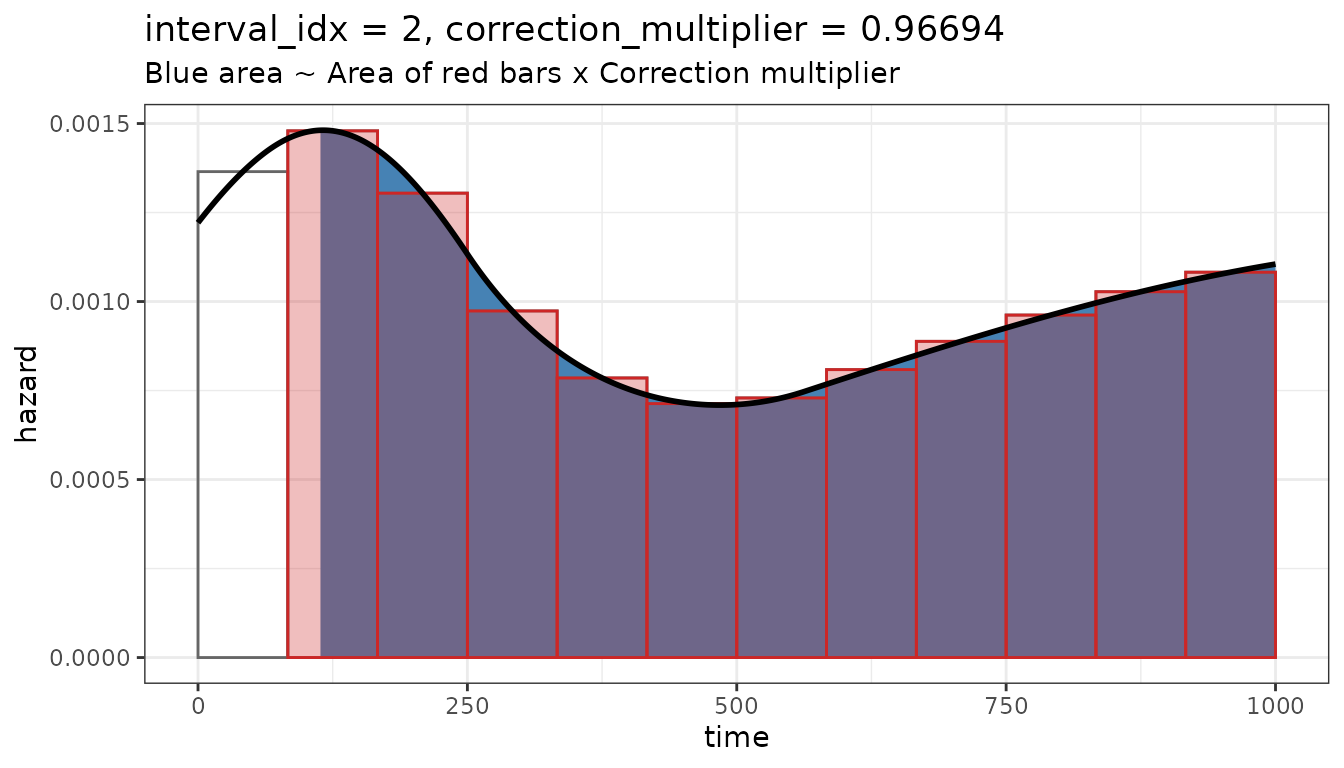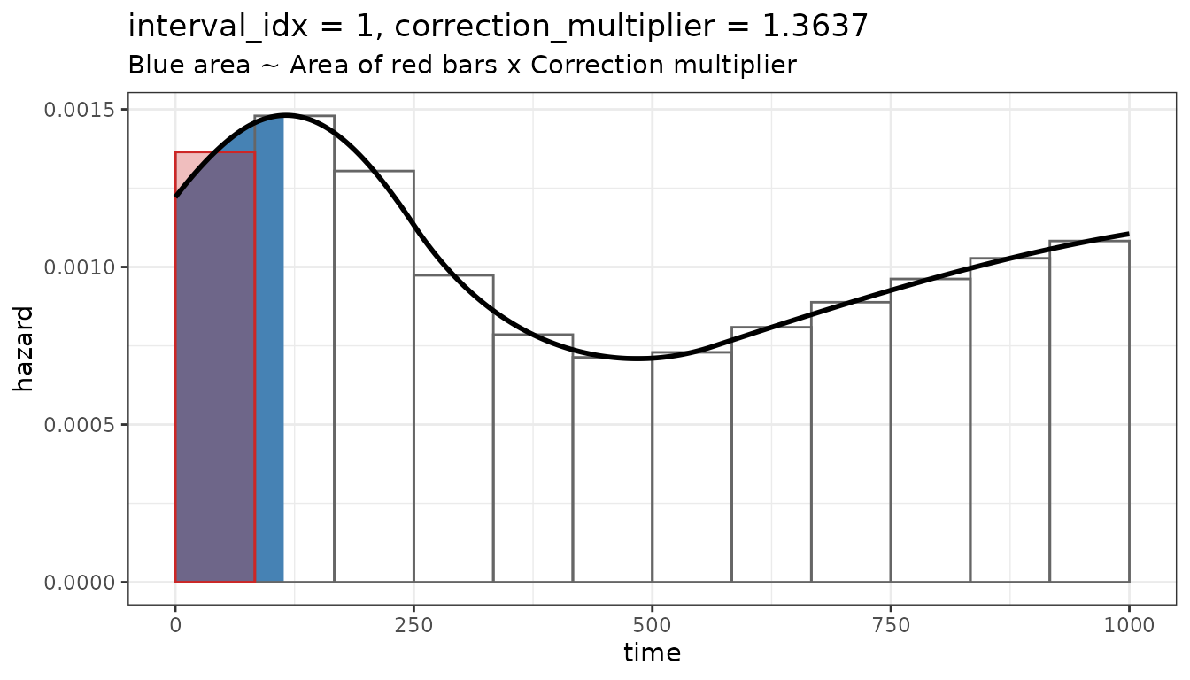 The package relies on numerical integration of the hazard functions to evaluate the likelihood. The integration step size is the max time divided by number of grid points, which we can check here.